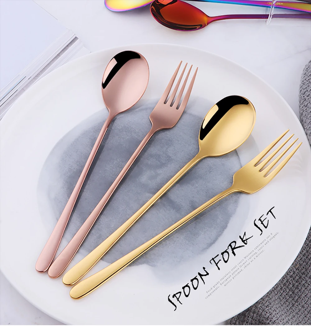 2pcs Stainless Steel Spoon & Fork Cutlery Set Dishwasher Safe Tableware For Kitchen Food Server Gold Spoons Dinnerware Set