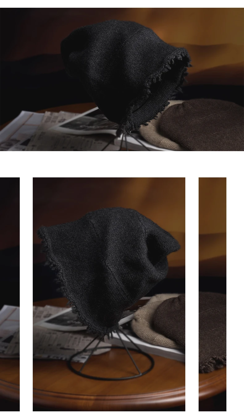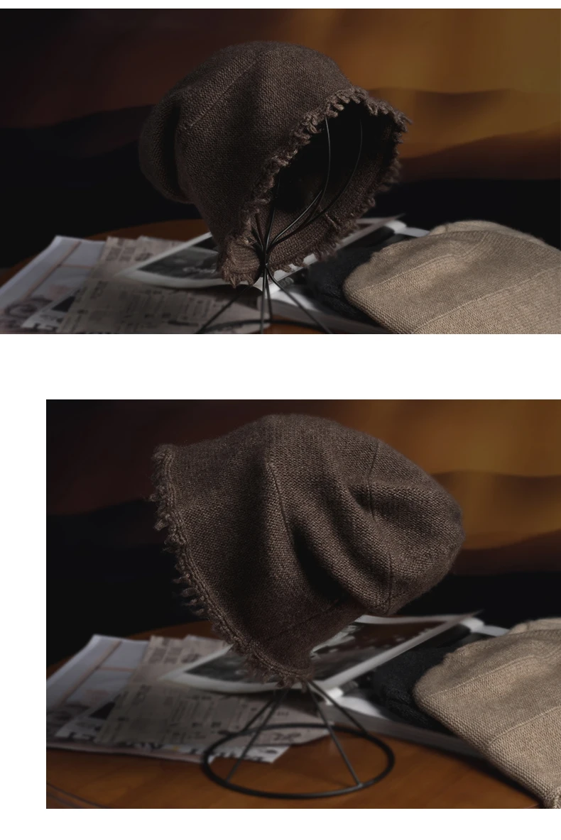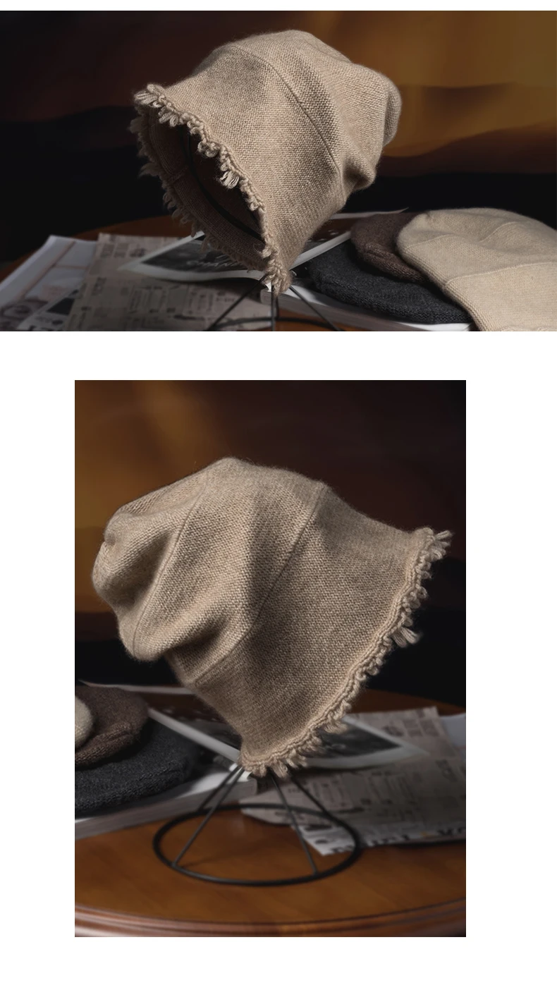 Mens Unisex Cashmere 35% Cap Knit Bell Hat Broke Hem